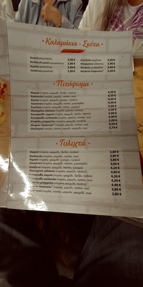 The Pitopsomo Menu at Chrisostomou Smirnis 111 in Moschato is a true celebration of flavors. Whether you're craving something light and fresh or a hearty, comforting dish, this menu has something to satisfy every palate. From mouthwatering pita wraps to unique, delicious sides, each item is crafted with care using high-quality ingredients. If you're in the mood for a satisfying meal with an authentic taste, you won't be disappointed.
